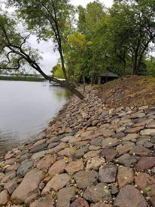 Riprap is typically 6”-9” granite or limestone rocks placed against a shoreline to prevent or control erosion. It creates a visually stunning, virtually indestructible, barrier that will protect your shoreline from water and ice erosion.